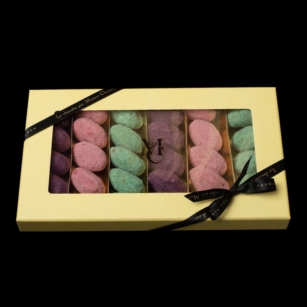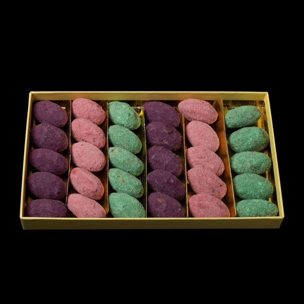 The gift box matches the almond praline and orange blossom praline.